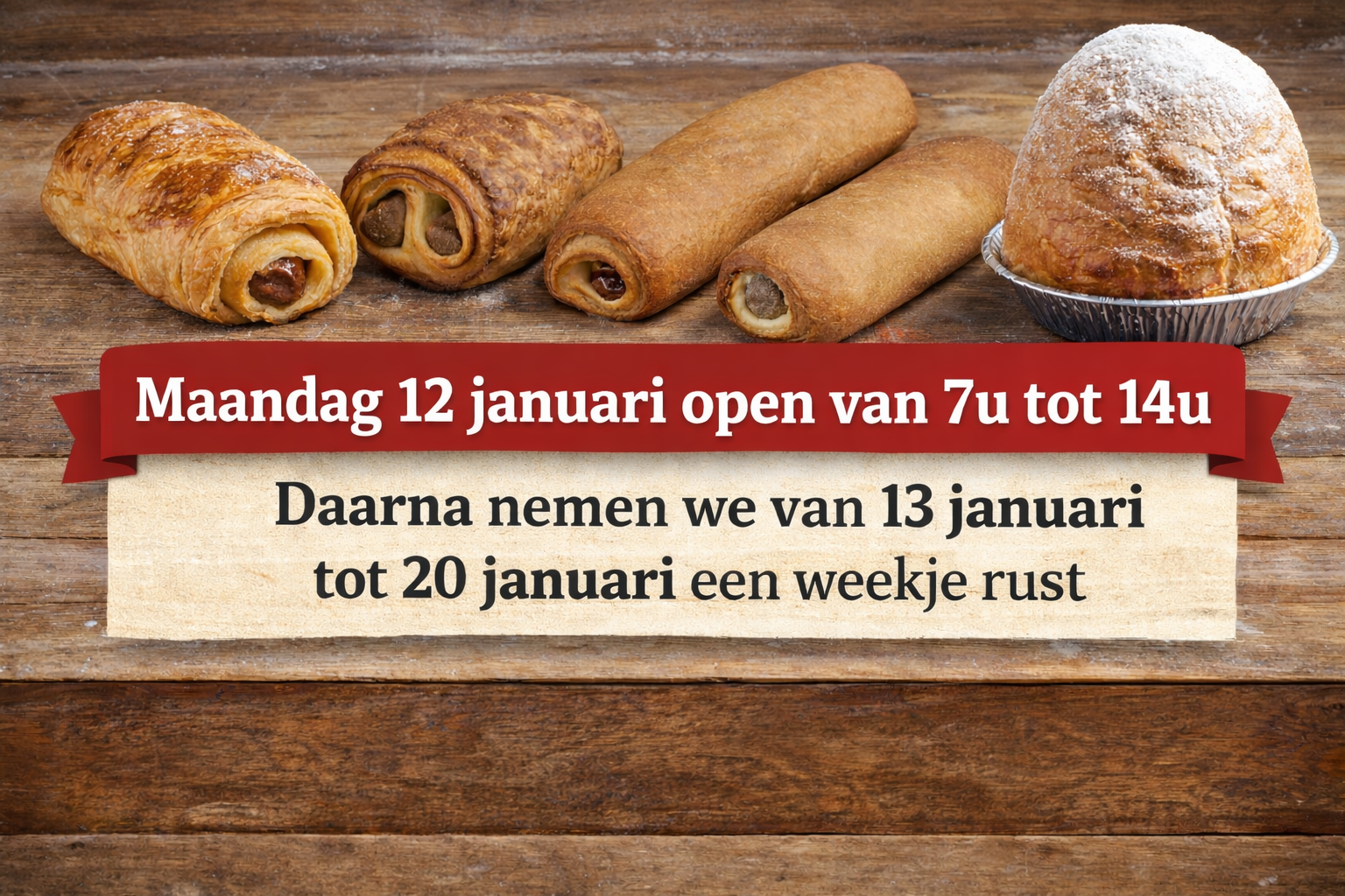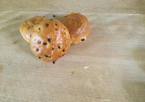 Keuze uit klein (400gr) of groot (800gr). Onze foto toont een klein rozijnenbrood.
